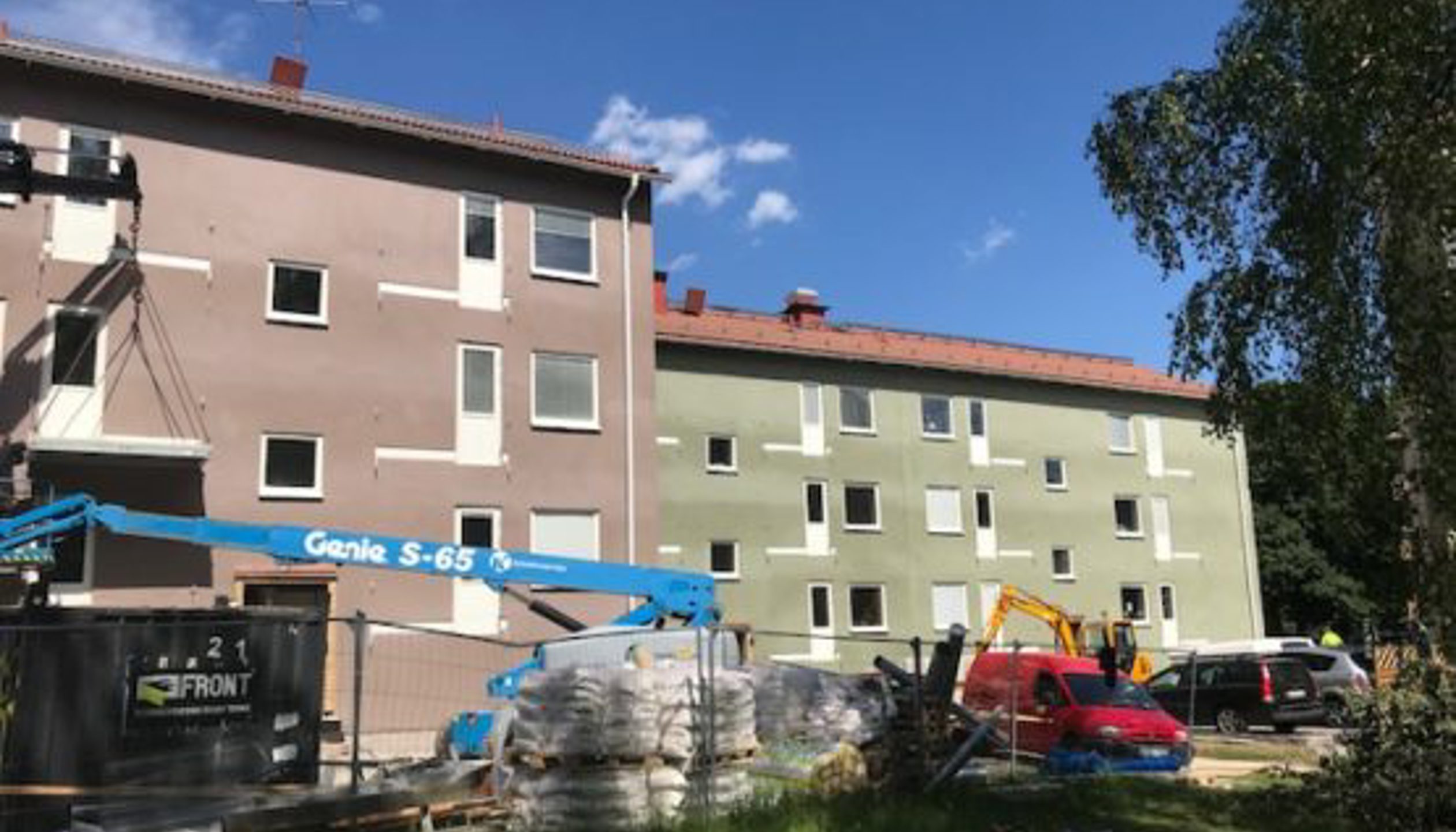 HSB har ett eget fastighetsbestånd med stort renoveringsbehov. SmartFront och Balco genomför nu sista åtgärderna på tre fastigheter i Västertorp. Husen går från gråbeige smutsig fasad till snygg tidsenliga pastellkulörer, balkongerna förstoras och nya räcken monteras.