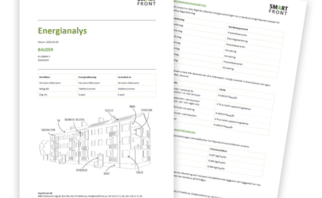Genom att analysera nuvarande energiprestanda identifieras områden med förbättringspotential så att arbetet med att minska energibehov, miljöpåverkan och kostnader underlättas. I samband med utredningen presenteras konkreta åtgärdsförslag innehållande kostnads-, energi- och CO2-besparingskalkyler.